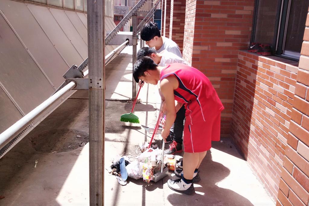 活动由法律系2014、2015级年级长带队,以班级为单位,对科研楼A段宿舍楼后公共走道区域进行了彻底打扫。打扫过程中同学们全身心投入,不怕苦、不叫累,有的用扫把清扫地面垃圾,有的用铲斗铲除杂物,有的推着垃圾箱转移垃圾,有的帮助同学捡拾掉落的衣服、鞋子等物品。经过1个多小时的全力清扫,该公共走道区域的面貌焕然一新。