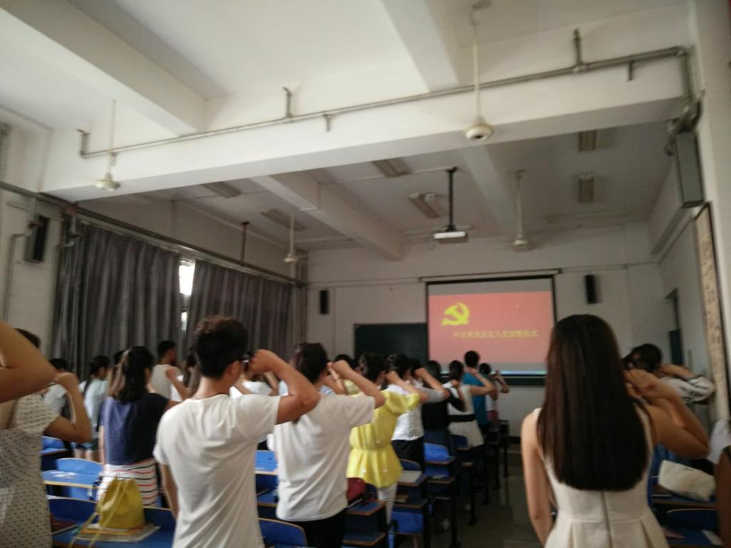 在庄严的国歌声中,大会正式开始。随后,全体党员起立并且宣读入党誓词。新党员代表薛菲菲同学和老党员代表冯梦莞同学在发言中,表达了坚定的信心和实干的态度。