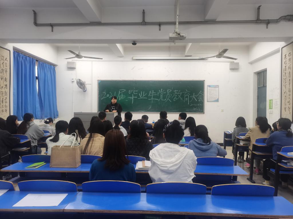 为加强对2021届毕业生党员的教育管理,引导毕业生党员发挥文明离校表率作用, 4月22日下午,外语系在老校区召开了2021届毕业生党员教育会。系党总支书记张帆以及2021届全体毕业生党员参加了活动。会议由毕业生辅导员李荔主持。