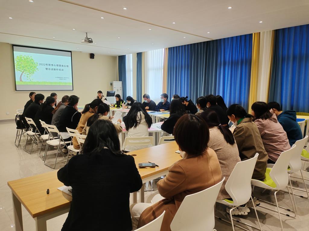 10月13日上午,心理健康教育与指导中心在综合实验楼520室召开2022年秋季心理普查反馈暨心理危机干预培训会。各学院心理专管教师、新生辅导员、新入职辅导员、心理健康教育与指导中心专职教师参加了此次会议。会议由心理中心主任郭丽娟主持。