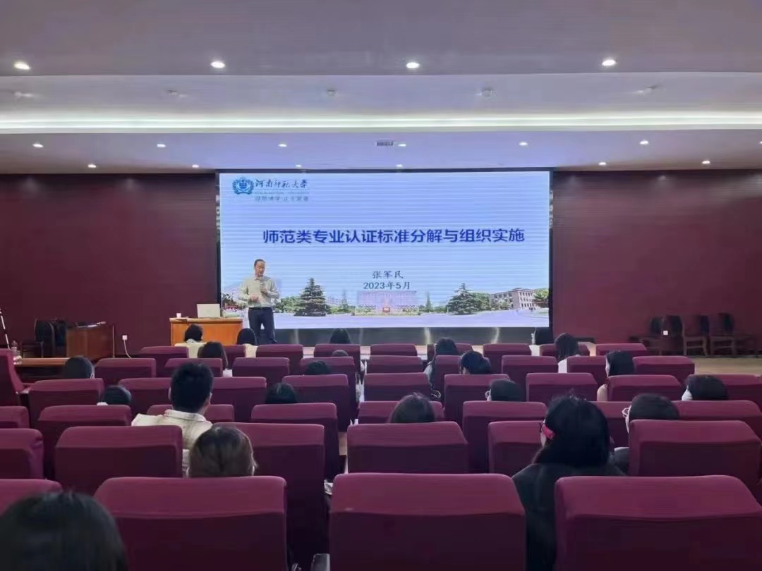 为推进我院师范类专业建设,进一步做好师范类专业认证,深入学习贯彻习近平新时代中国特色社会主义思想和习近平总书记关于教育的重要论述,我院特邀河南师范大学外国语学院副院长张军民博士于5月25日下午在学院楼报告厅开展师范类专业认证标准分解与组织实施讲座。本次讲座由外国语学院院长梁晓冬主持,外国语学院全体教师与会。