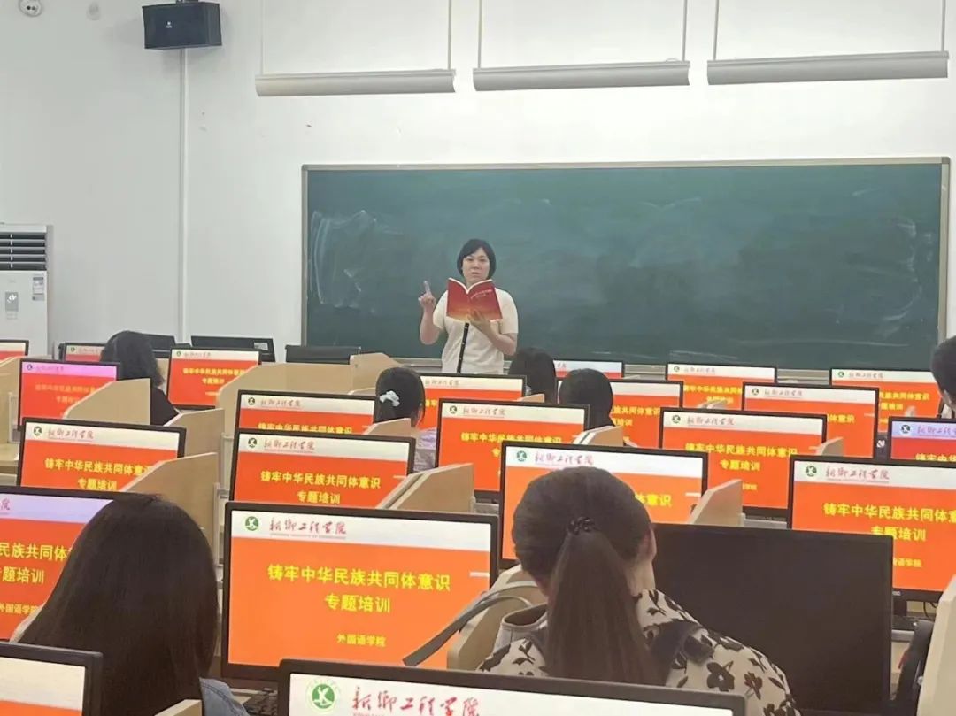 为深入学习贯彻习近平新时代中国特色社会主义思想,进一步强化师生铸牢中华民族共同体意识的思想自觉和行动自觉,外国语学院于6月8日组织师生开展铸牢中华民族共同体意识专题培训活动,院长梁晓冬、副院长张帆、副书记王伟、教师、学生代表参与。