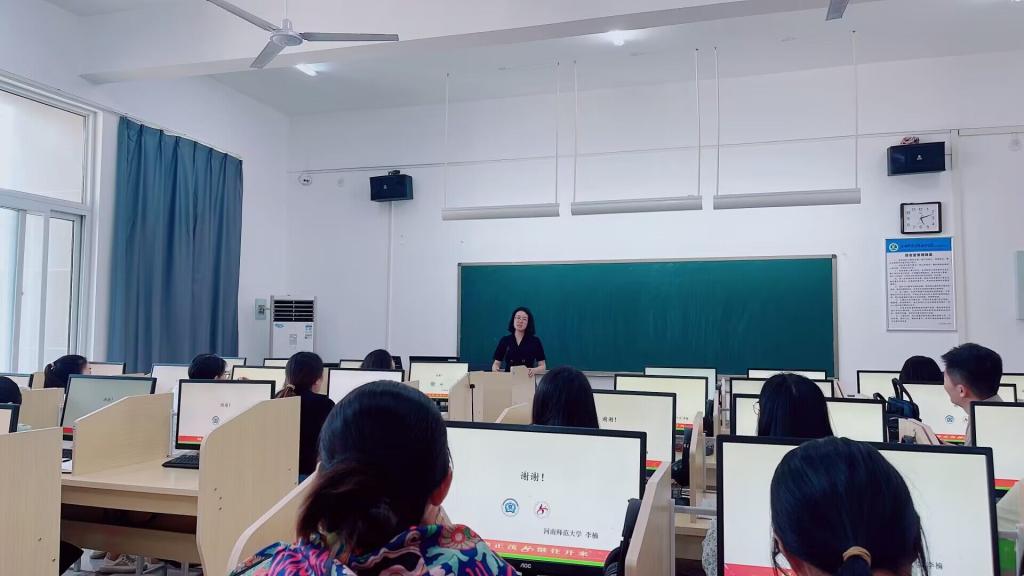 为全面助推一流本科课程建设,创新课程改革,推动学院一流课程建设与申报,6月15日下午,我院特别邀请河南师范大学外国语学院副教授李楠于语音室3为外国语学院教师做一流本科课程的探索与实践专题讲座,此次讲座由外国语学院院长梁晓冬主持,全体教师参与。