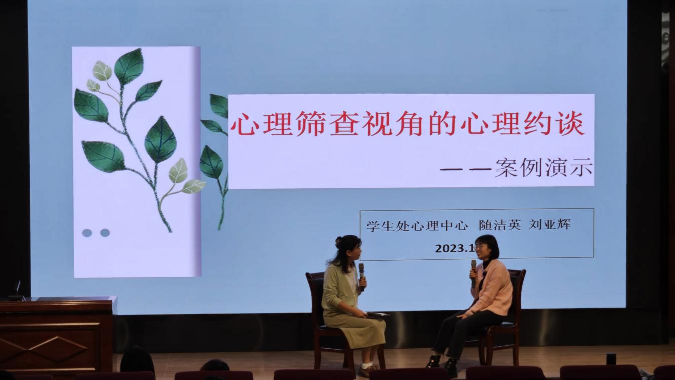“案例推演”活动中,心理中心随洁英和刘亚辉老师以角色扮演、剧情演绎的方式生动呈现了“心理筛查视角下的心理约谈”,剧情结合目前学校正在开展的全校学生心理筛查工作,贴合实际,真正实现方案共研、决策共谋。随后由随老师主持的“辅导员心语”活动,围绕“建立关系”、“了解学生问题”、“学习应用焦点解决教练技术”、“如何评估”、“如何建档”以及后期的追踪处理等有针对性展开谈心谈话技能讲解。最后学生处负责人对该活动进行了点评,他指出,本次活动创新工作形式,将日常谈心谈话搬至舞台上直观演绎出来,是一场团体性的示范活动,期望大家能够在学习聆听中收获成长,增强角色意识,提高履职能力。