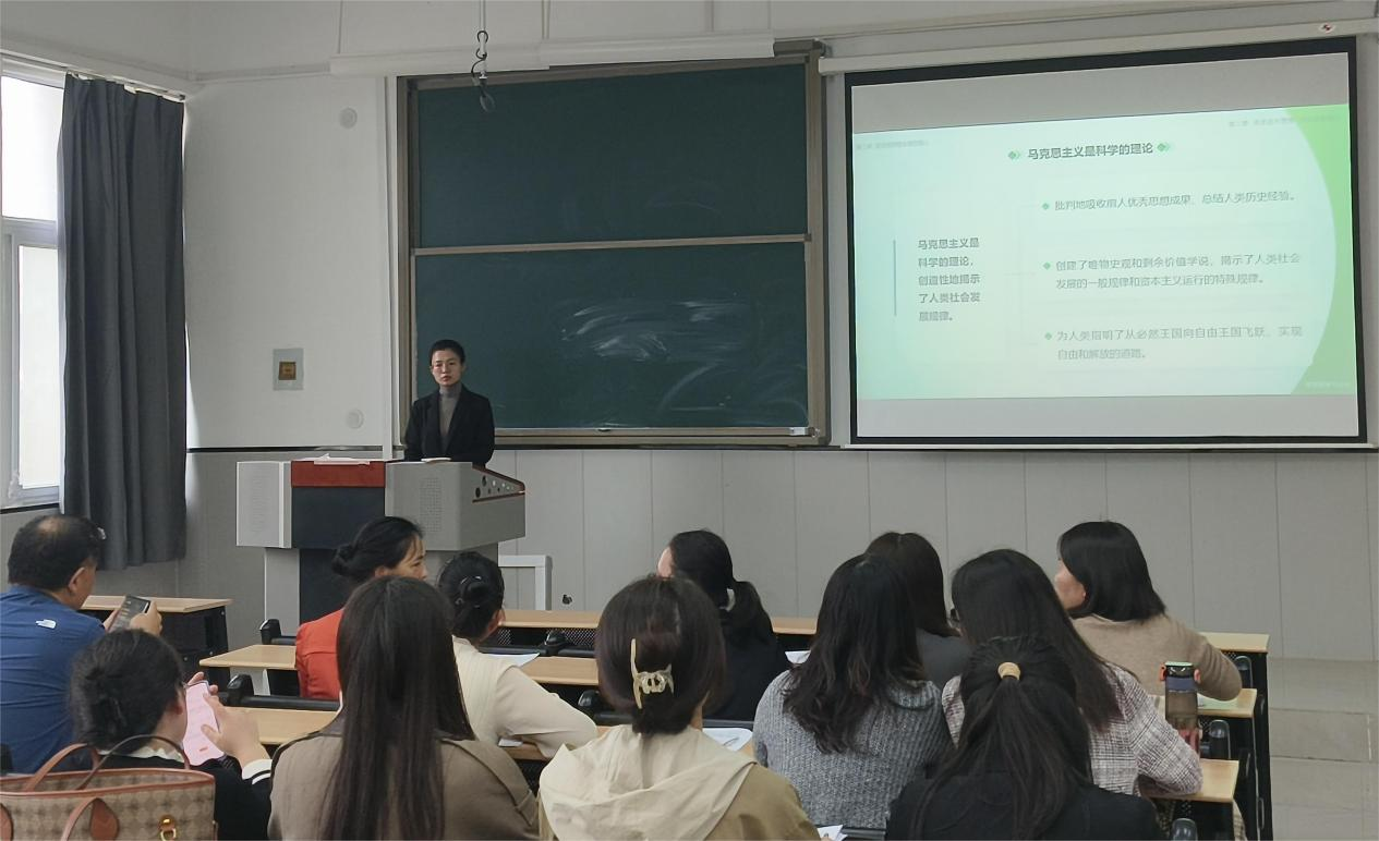 徒弟代表赵微老师在活动中进行了展示,授课内容为“马克思主义为什么行”。赵微老师首先进行了解读了这次课程的情况;教材内容、学习意义、教学重点和教学难点进行阐述;学生的基本情况,包括知识能力水平等;明确这节课要达到的知识目标、能力目标和思想道德情感目标;用什么教学方法来教授本课内容,为什么选择这种教学方法;指导学生采用什么学习方法进行学习;教学活动的具体组织等。随后讲授马克思主义为什么行的道理,马克思主义行,是由马克思主义的科学本性、人民本性、实践本性和创新本性所决定的。为打磨出一节更为高效的精品课,与会教师就赵微老师的讲授各抒己见,气氛热烈。陈亚敏老师作为师父代表发言,在肯定了赵微的讲授后,又旁征博引,指出各门思政课对这一问题的解释的相互印证、如何调整课件、如何承上启下一气呵成地讲授等进行了具体指导,将自己的教学经验和课堂管理经验毫无保留地与徒弟分享,真诚地关心和全力支持徒弟。