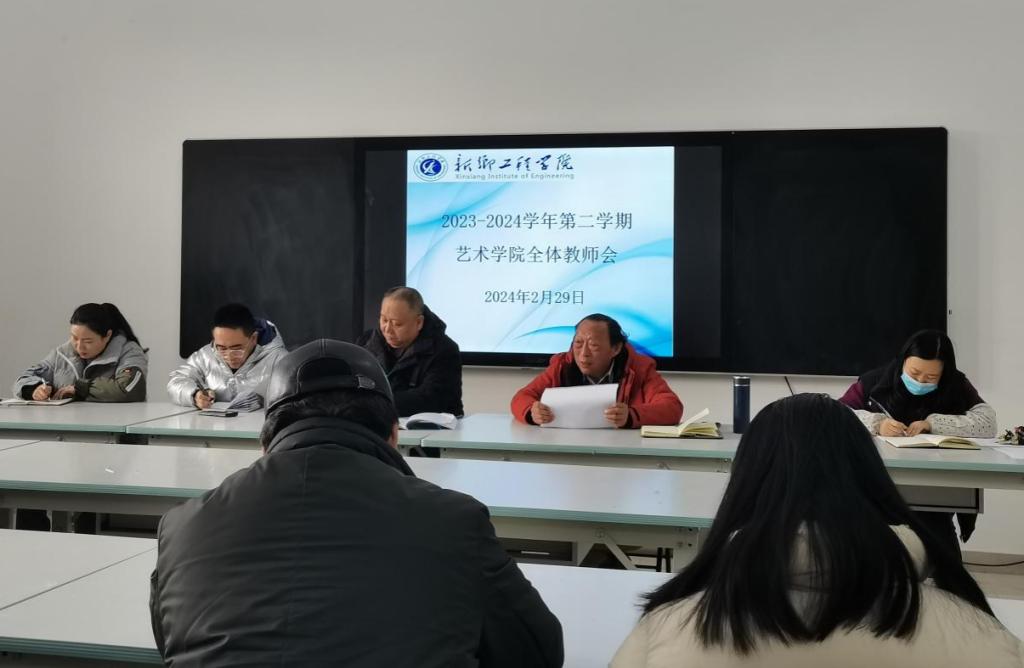 龙腾四海启新篇,鹏程万里行致远。为扎实推进本学期各项重点工作平稳有序高质开展,艺术学院2023-2024学年第二学期第一次全体教师周例会于2月29日下午在学院楼408召开,对新学期工作进行了切实的部署。本次会议由院长张建伟主持。