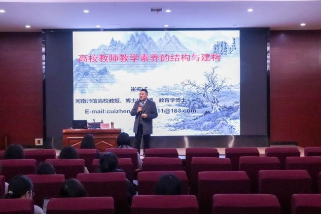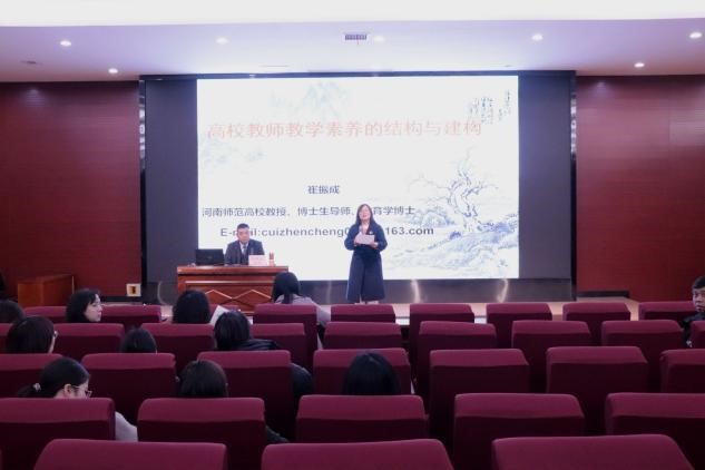 为学习贯彻党的二十大精神,高水平建设教师队伍,全面提升我院师生教学素养,促进我院高质量发展,3月7日下午,我院邀请河南师范大学教务处副处长崔振成教授,在学院楼报告厅为我院师生做了题为“高校教师教学素养的结构与建构”的学术报告。报告由我院常务副院长罗艳娟主持,学院全体教师和学生代表参加。