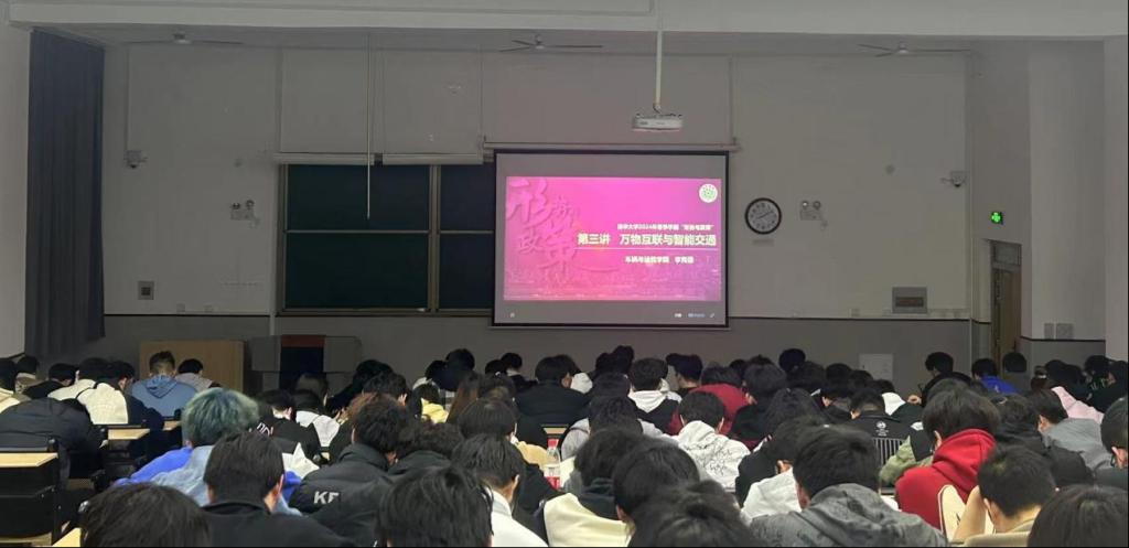 李克强教授以《万物互联与智能交通》为题,从世界智能汽车产业发展态势到我国智能网联汽车创新发展之路进行了深入的解读。中国如何实现智能交通系统的高质量发展、智能汽车和智能交通如何助力中国式现代化的实现,是当代中国汽车交通人思考的核心命题。他表示,在未来,低碳化、电动化、智能化、网联化将成为车辆行业的科技变革趋势;采用“理论-技术-产品”三位一体科技创新模式,是我国实现换道超车并引领世界汽车产业的关键问题。课程最后,李克强教授寄语广大同学要“立大志,担大任”,为实现国家使命而努力奋斗!