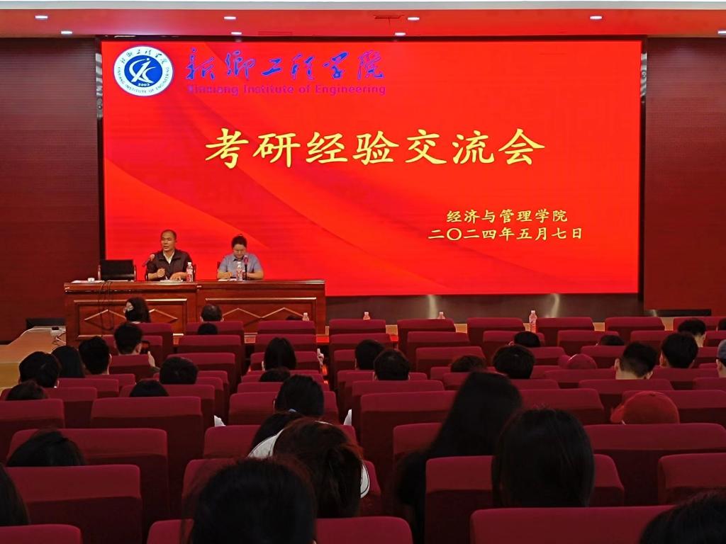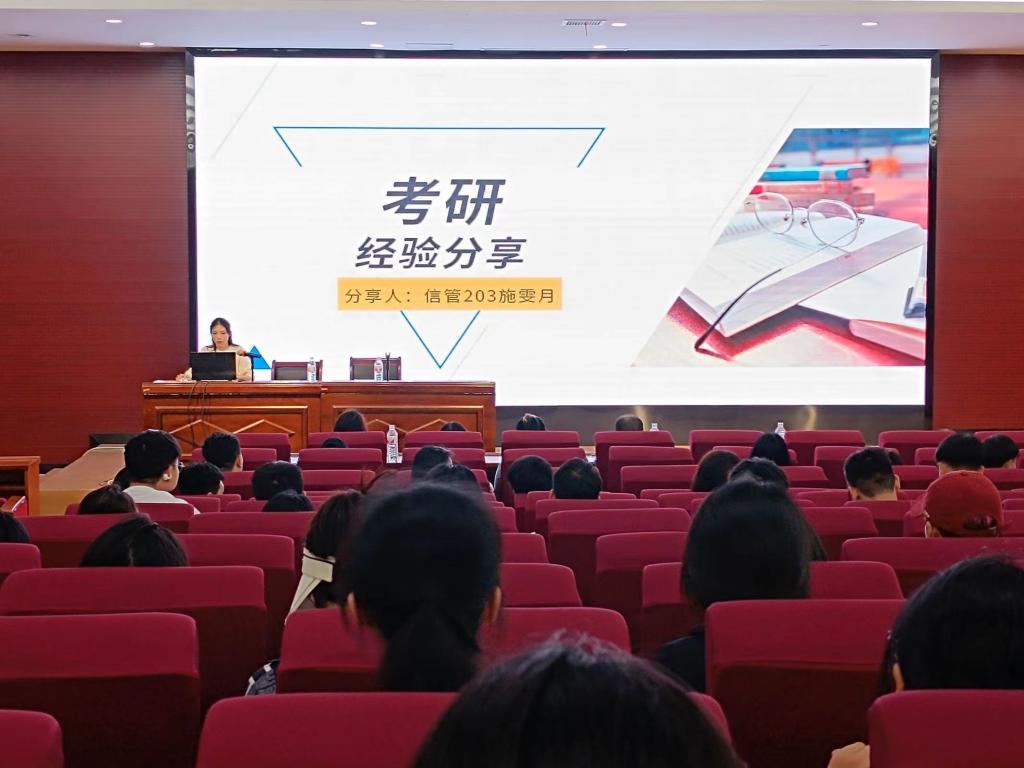 为帮助考研学子们答疑解惑,经管学院于2024年5月7日在学院楼报告厅召开考研经验交流会,邀请五位考研拟录取学生代表进行经验分享。院党委副书记张震、院团委书记魏淑敏、各年级学生代表及大三备考学生参会。