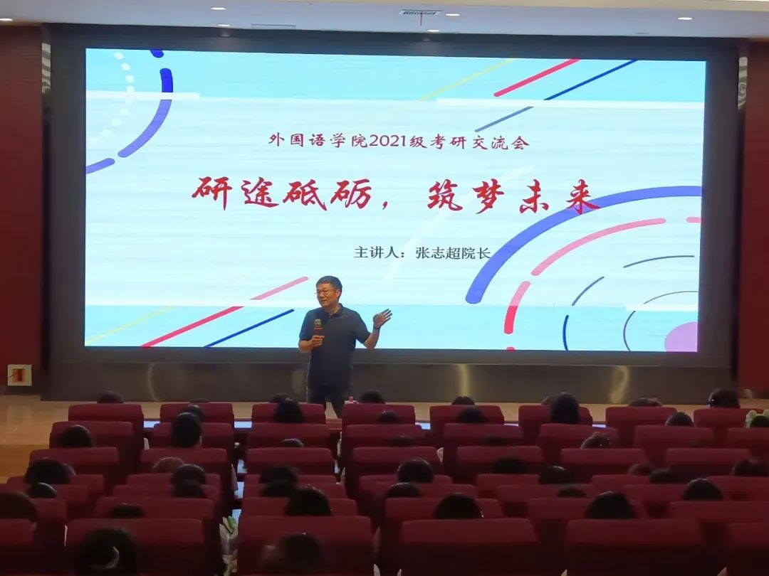 为解答有志于考研的同学在备考道路上的各种困惑,6月14日,外国语学院在学院楼报告厅举行2021级考研交流会。本次考研交流会特邀河南科技学院外国语学院副院长张志超主讲,外国语学院2021级全体学生参会。