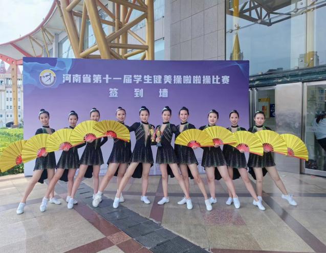 近日,由河南省学生体育总会主办的河南省学生运动操舞系列总决赛在郑州登封市圆满落幕。我校“橙光”啦啦操队在体育教师龚晓、李莎莎两位老师的指导下荣获大学甲组-排舞原创动作冠军、大学甲组-排舞规定动作亚军、大学甲组-排舞自选动作亚军。
