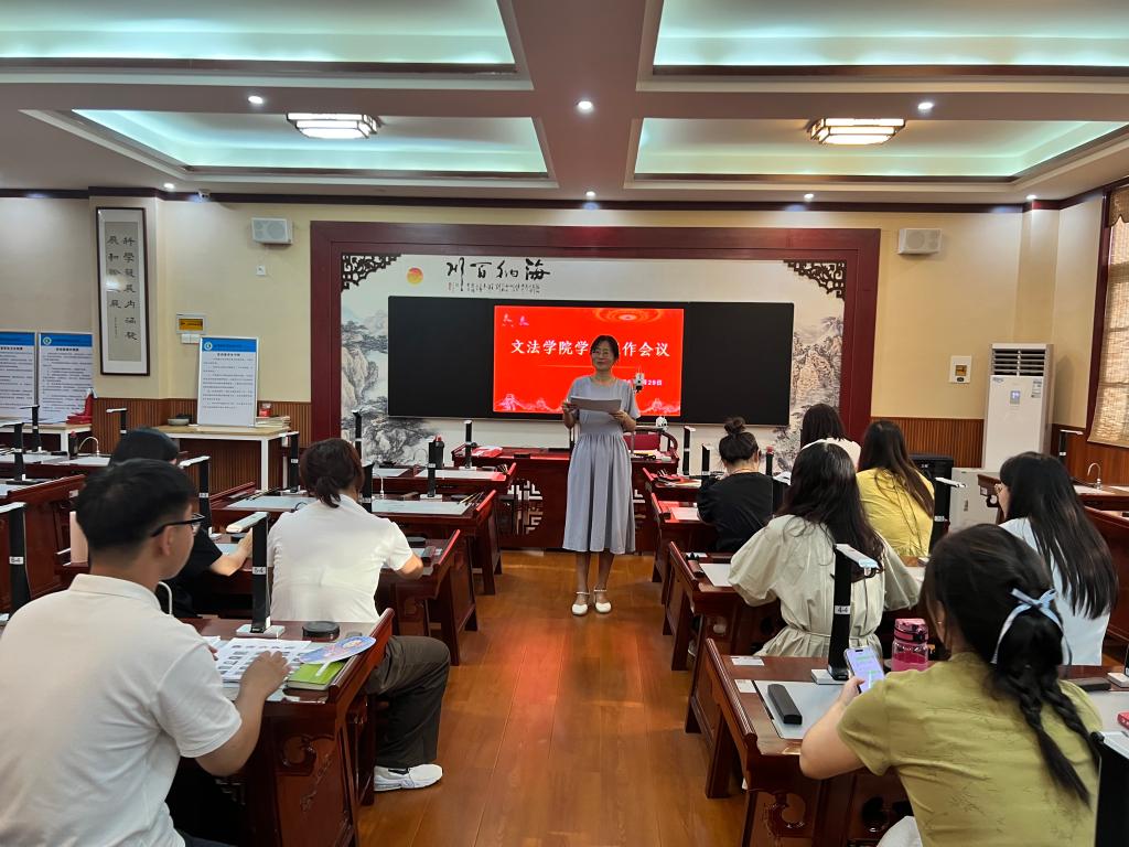 刘书记带领全体教师学习教育部关于印发《新时代高校教师职业行为十项准则》,要求全体教师要严格遵守教师职业道德规范,以身作则。加强自身的学习和修养,不断提高自身的业务水平和综合素质。随后对迎新工作进行安排,她指出迎新工作是新学期的重要任务之一,2024级辅导员要做好新生的接待、注册、入学教育等工作,确保新生顺利入学。