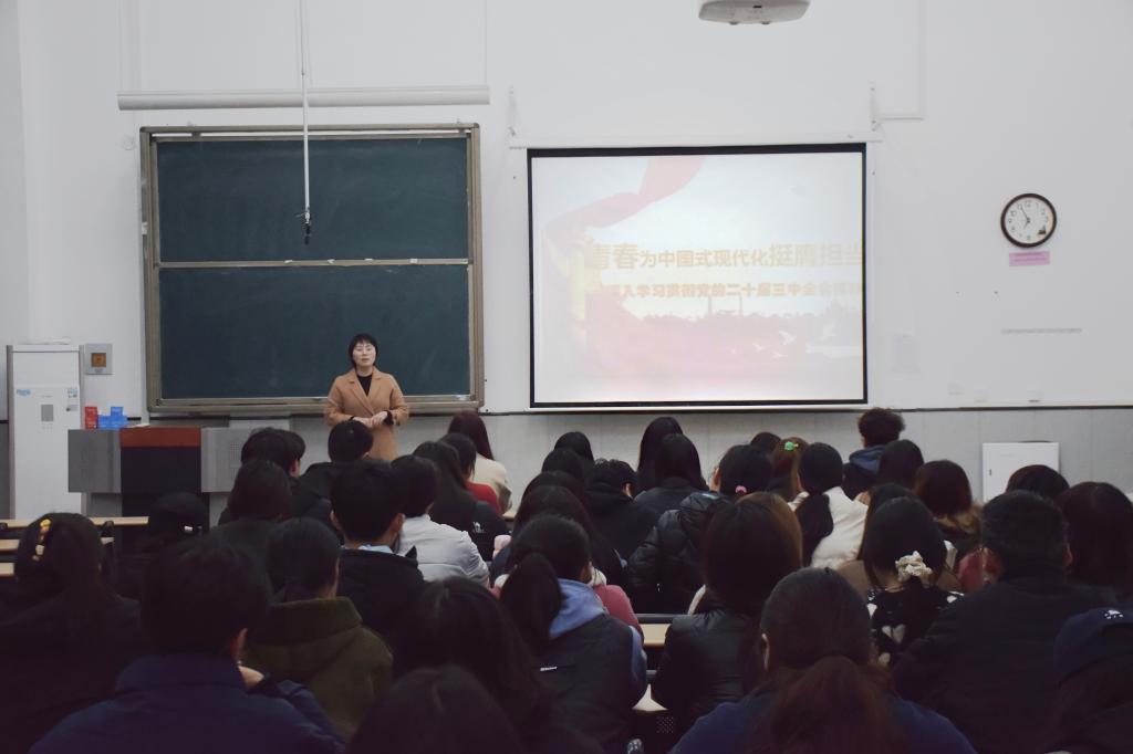 11月21日晚,校团委书记郑俊珂为青马班学员宣讲党的二十届三中全会精神。