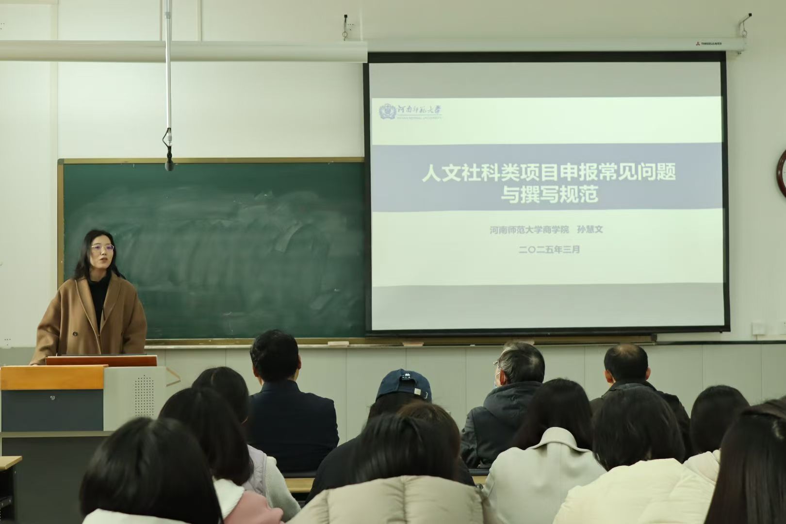 3月6日,经济与管理学院在学院楼B-211举办人文社科项目申报专题讲座。本次讲座特邀河南师范大学商学院教授、经济学博士孙慧文老师主讲,我院院长任太增主持,全体教师聆听讲座。
