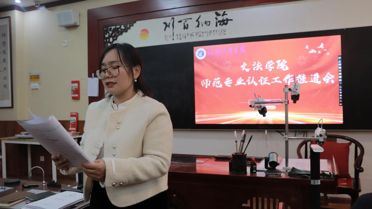 罗艳娟宣读了师范专业认证工作实施方案,对自评报告撰写、材料审核、专家预评估等重点任务进行统筹规划,确保责任到人、进度可控。她指出,认证工作需与学科建设、教学改革深度融合,通过“以评促建、以评促改、以评促强”全面提升师范生培养质量。