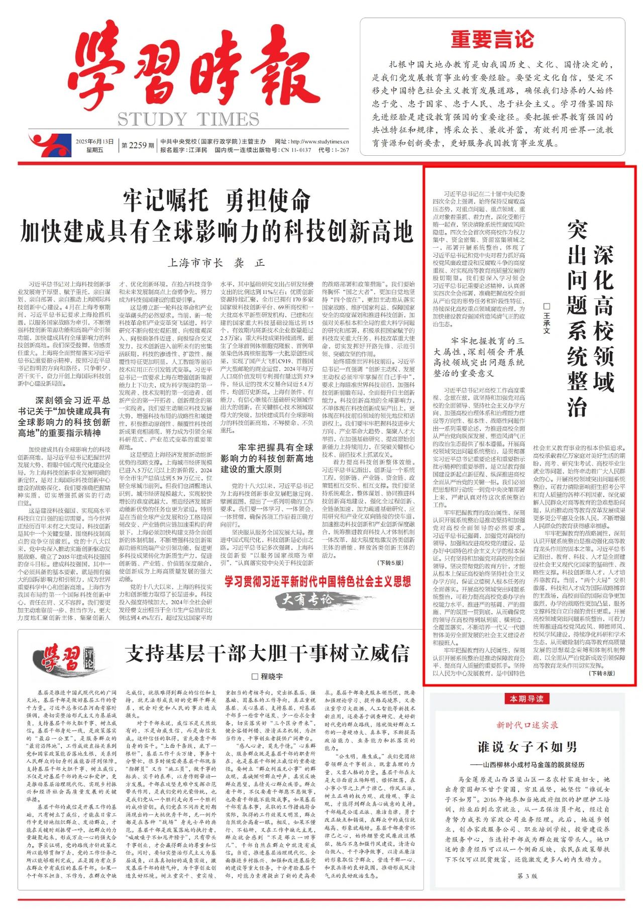 做好高校领域突出问题系统整治工作,意义重大、影响深远。必须坚决落实党中央部署,拧紧责任链条,采取有力举措,持续完善治理体系、净化政治生态,为加快建设中国特色世界一流大学和教育强国提供坚强保障,不断赢得社会赞誉、师生口碑。