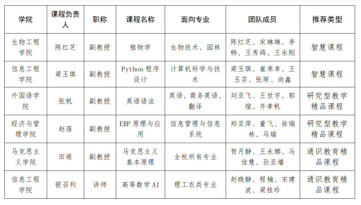 近日,河南省教育厅发布了《关于2025年度河南省本科高校精品课程建设申报工作的通知》(教办高〔2025〕200号)。按照通知要求,经过个人申报、学院推荐、材料评审、综合评议等程序,我校拟推荐上报以下6门课程: