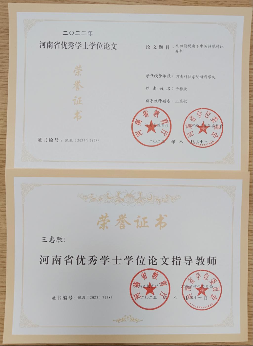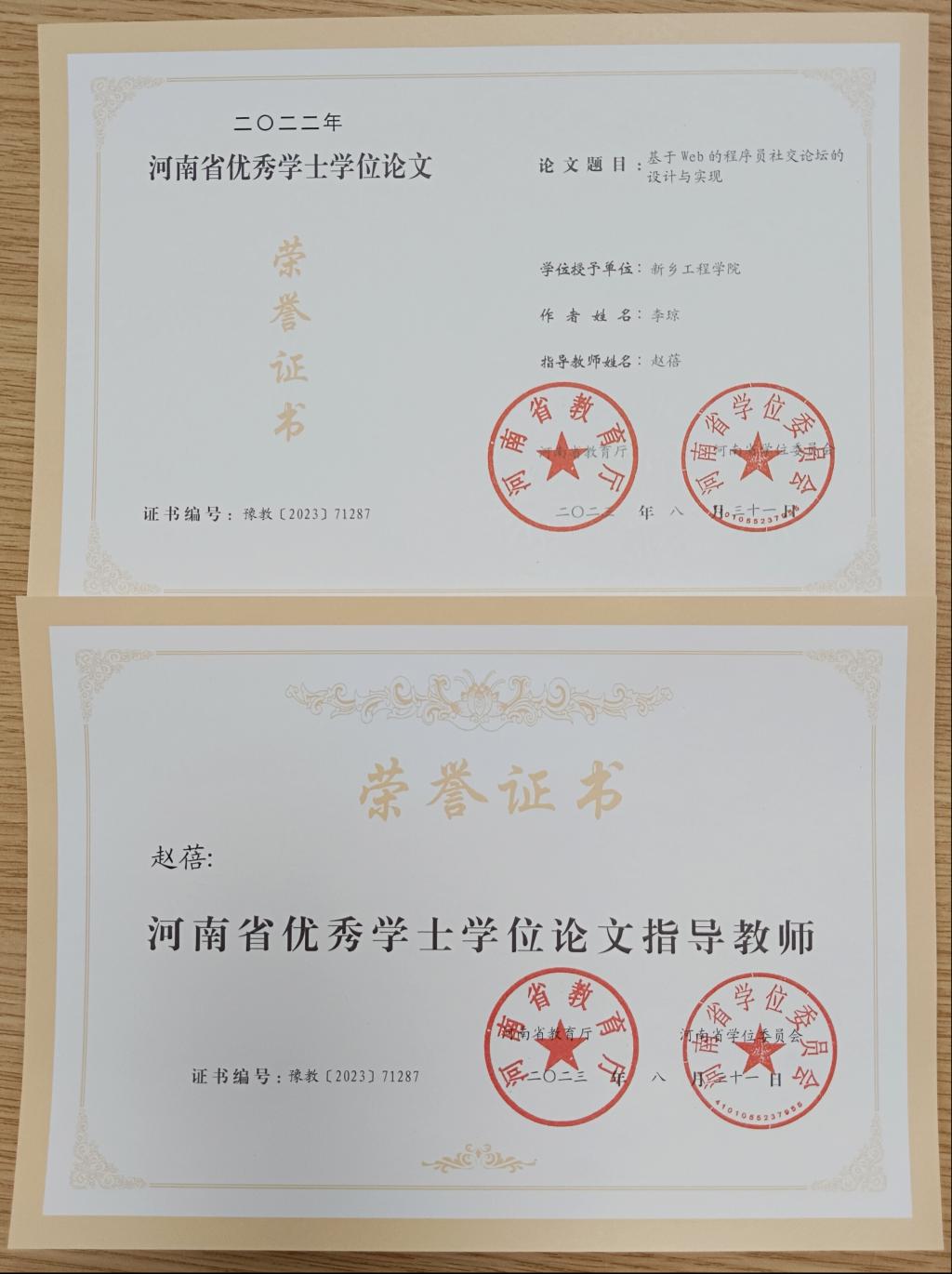 附:永利23411集团官网优秀学位论文证书及优秀指导教师证书