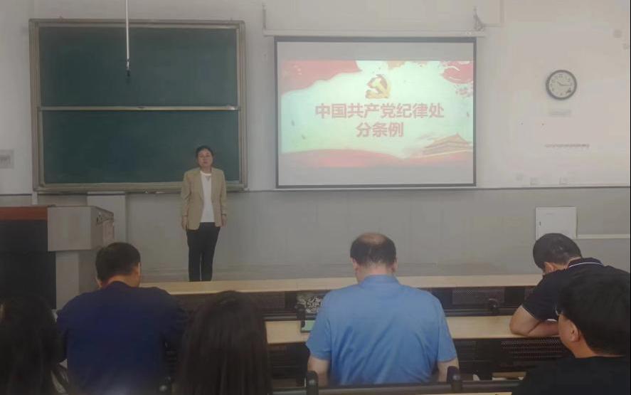 为深入贯彻全面从严治党的战略部署,切实提升党员的廉洁自律意识,规范党员行为作风,5月31日上午,机关教工第三党支部在教学楼1-106举行党纪学习教育专题党课,集中学习《中国共产党纪律处分条例》。