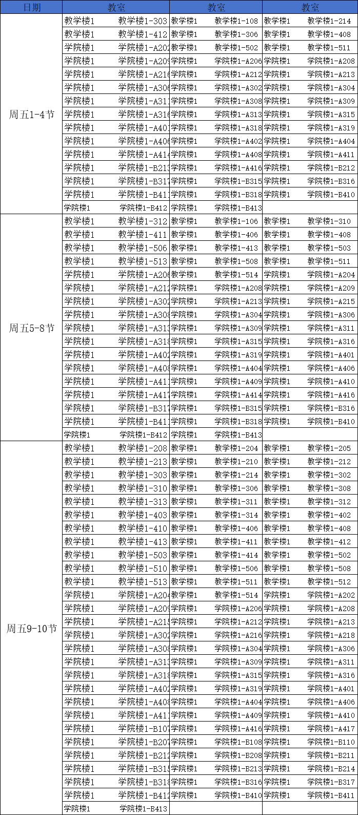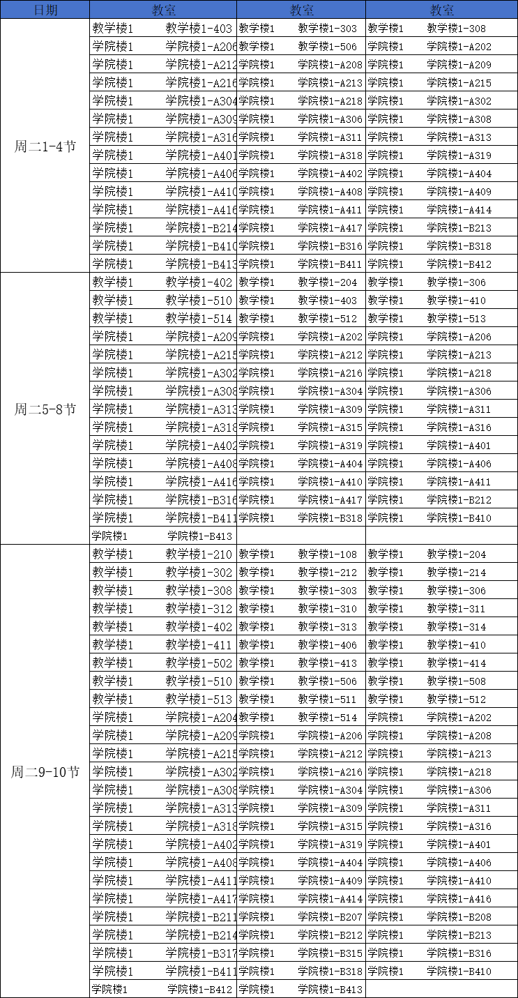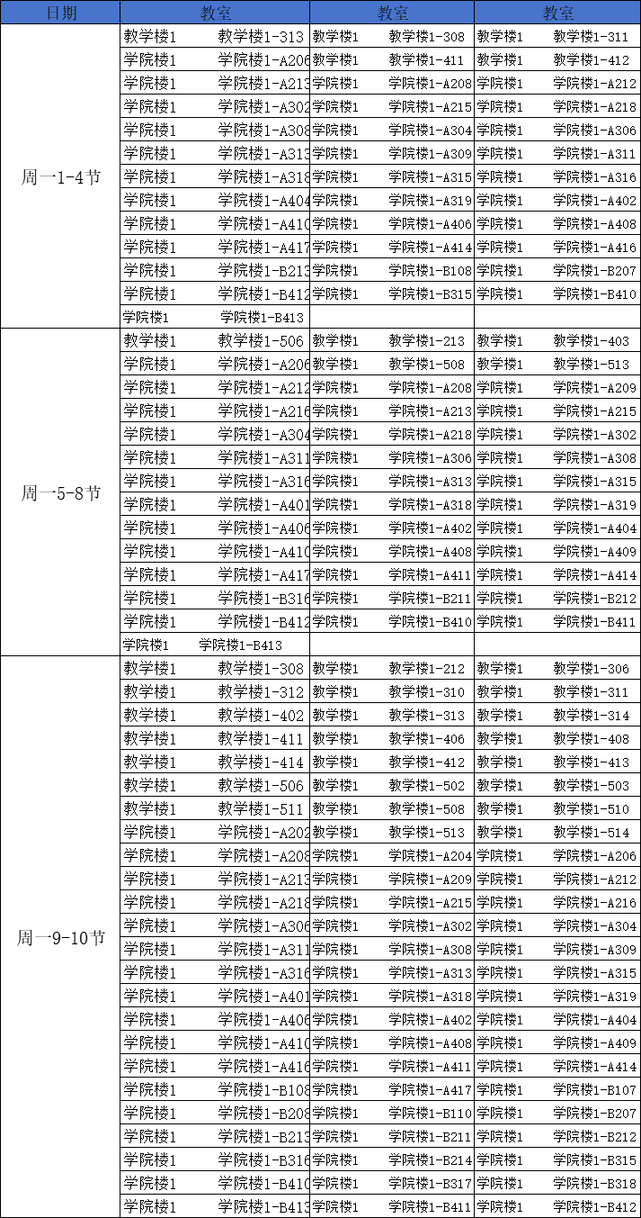 第十二周空闲教室
