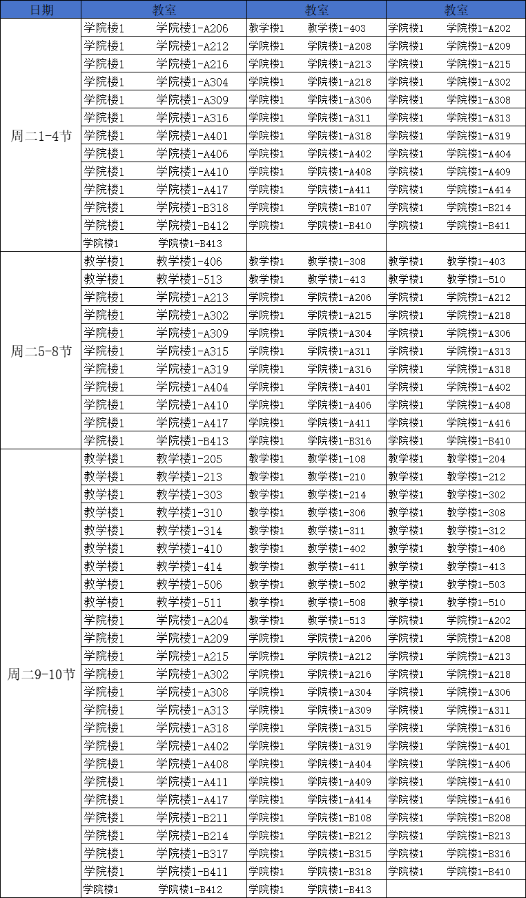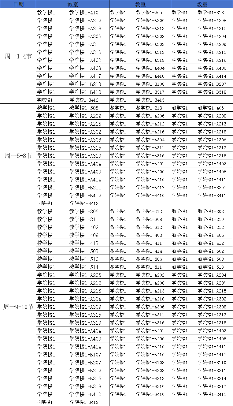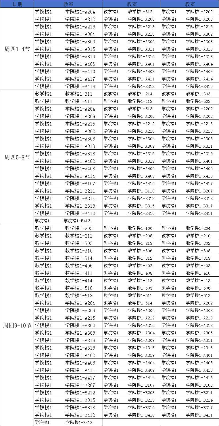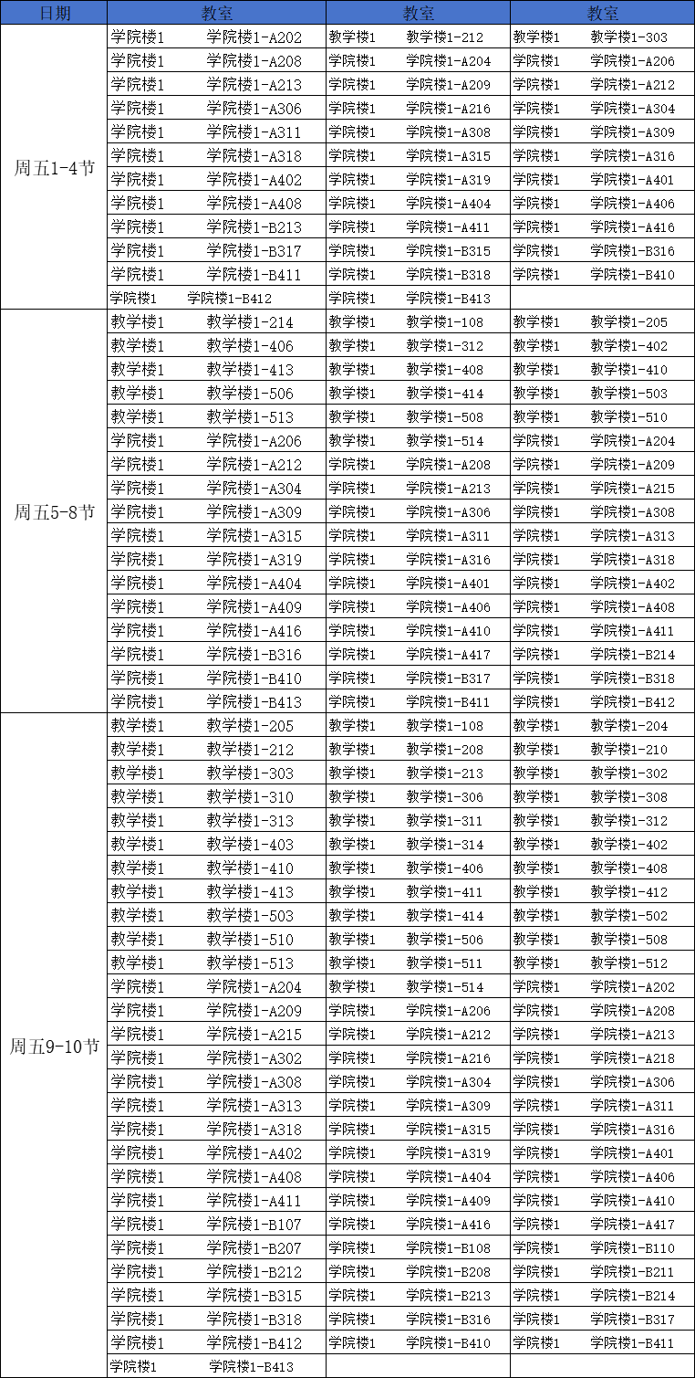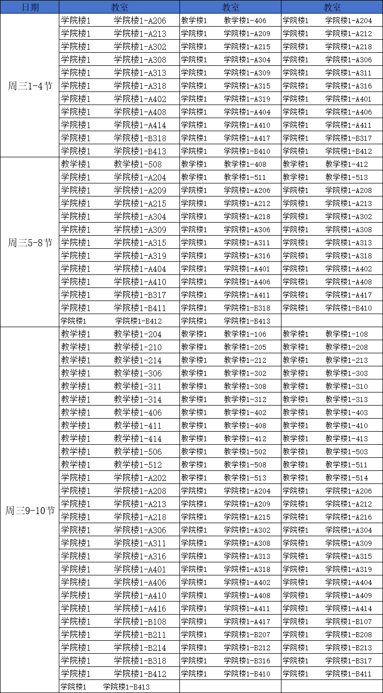 第七周南校区空闲教室情况