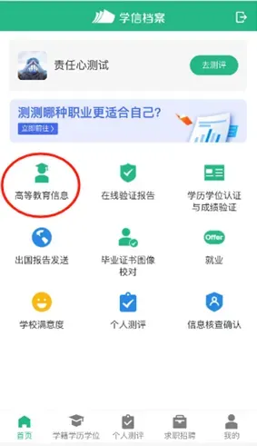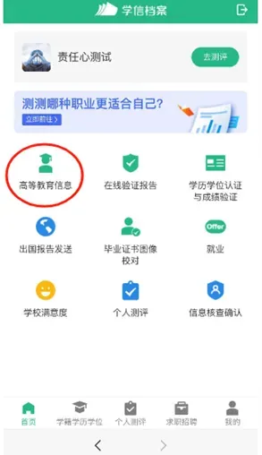 第三步:注册成功后,系统会自动跳转到首页,点击【高等教育信息】模块下的【学籍】栏目查看并核对学籍信息与本人实际信息是否一致(如录取照片、姓名、性别、出生日期、民族、证件号码、学校名称、层次、专业、学籍状态等)。如注册信息与本人实际不符,可联系学校学籍学历管理部门处理。