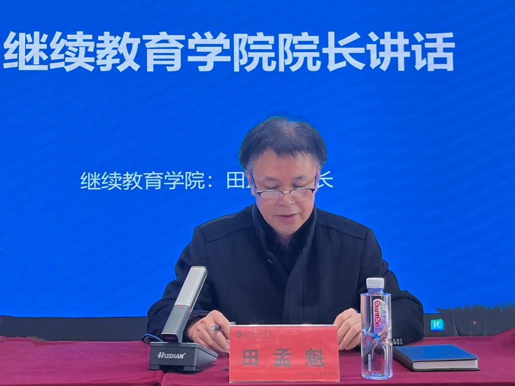 田孟魁院长在致辞中,向新同学的到来表示热烈的欢迎,并对同学们提出了期望,一是要珍惜学习机会,树立终身学习的理念。学习是一个终身的过程,只有不断学习,才能跟上时代的步伐,才能在激烈的竞争中立于不败之地;二是希要保持积极的学习态度,勇于面对挑战。学习的过程不会一帆风顺,可能会遇到各种困难和挑战。但请相信,每一次的挑战都是成长的机会;三是要注重理论与实践相结合,学以致用。在学习过程中,注重理论与实践的结合,真正做到学以致用,提升自己的实践能力和解决问题的能力;四是要遵守学校的各项管理制度。学校制定的各项规章制度,既是对同学们日常生活、学习行为的约束和规范,也是对同学们权益的保护。