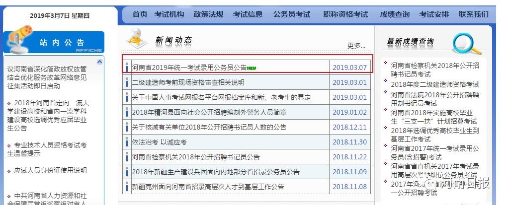 河南省人力资源社会保障厅网站(http://www.ha.hrss.gov.cn)、河南人事考试网(http://www.hnrsks.com)为本次全省考试录用公务员工作专用网站。省公务员主管部门通过以上网站发布招考公告及与本次考试录用工作有关的信息和事项。