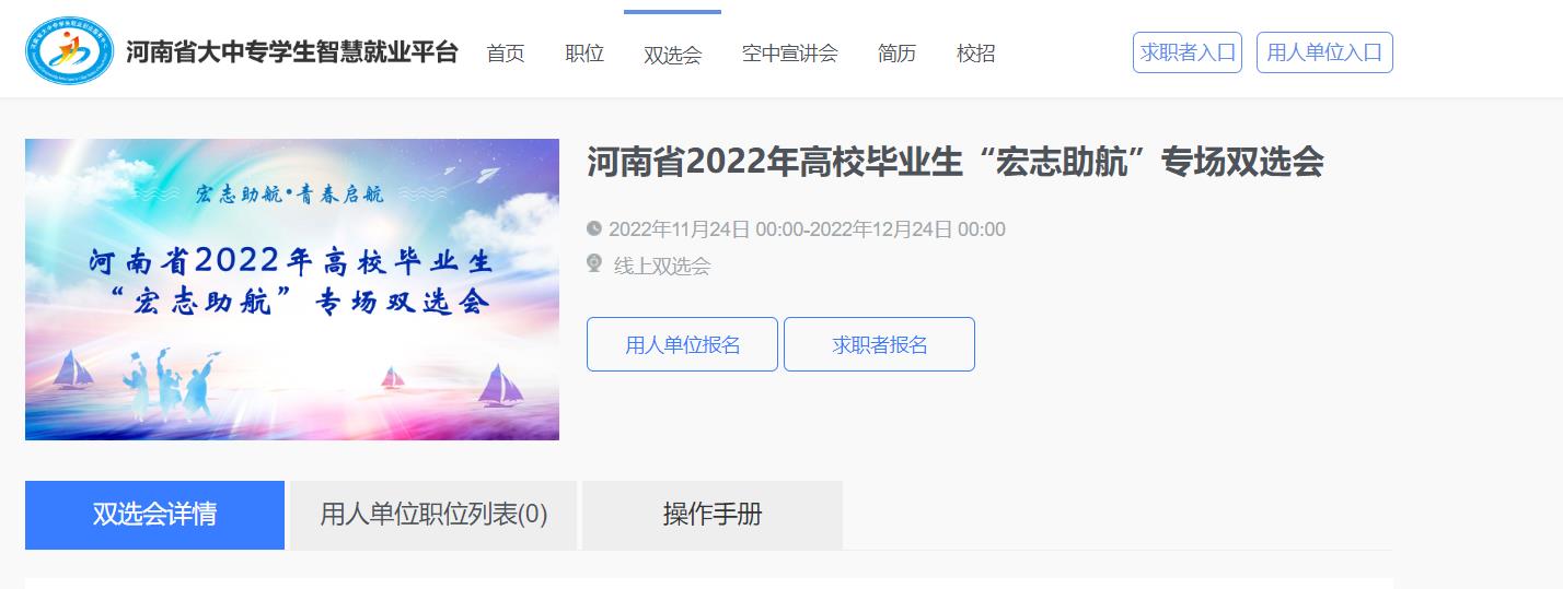 为贯彻党的二十大精神,加强困难群体就业帮扶,按照教育部“中央专项彩票公益金宏志助航计划”工作要求,依托河南省大中专学生智慧就业平台,开展河南省2022年高校毕业生“宏志助航”专场线上双选会。