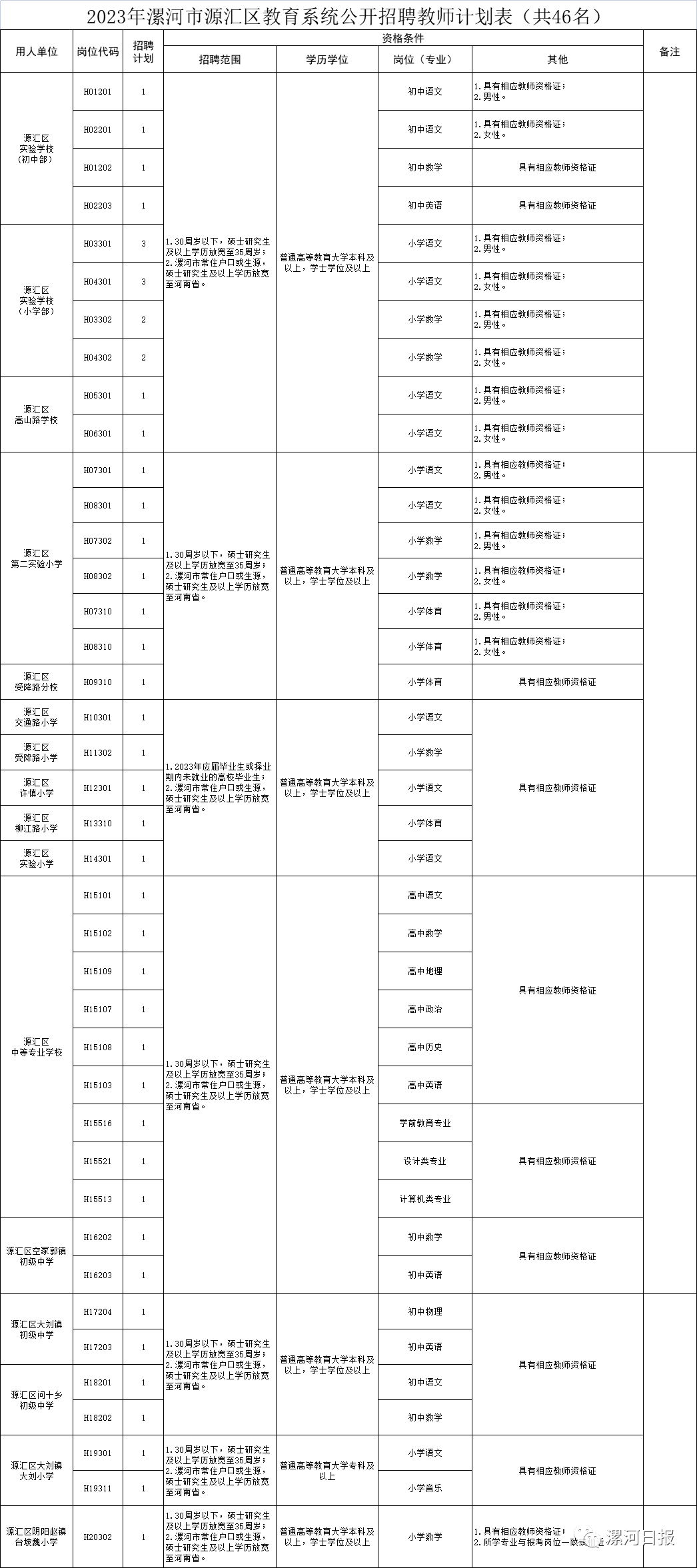 根据《事业单位人事管理条例》(国务院第652号令)、《河南省事业单位公开招聘工作规程》(豫人社〔2015〕55号)、《漯河市机关事业单位补充人员管理办法》(漯编〔2017〕3号)等有关规定和要求,按照市委编委研究确定的补充人员计划,经市机关事业单位公开遴选招聘人员工作领导小组研究决定,全市教育系统面向社会公开招聘教师。