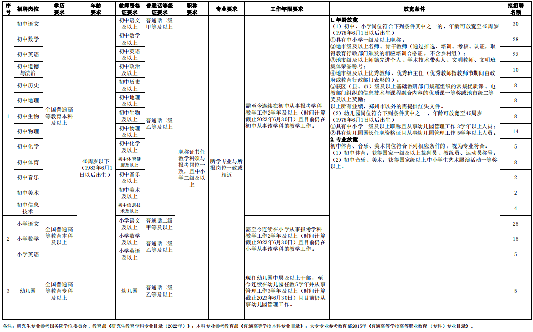 详见《二七区2023年面向社会公开招聘在职教师岗位及条件一览表》。