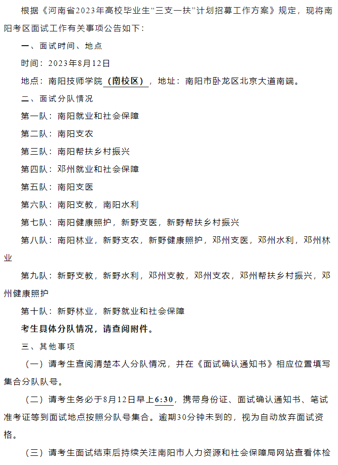 河南省2023年“三支一扶”招募南阳考区面试公告