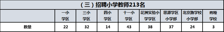 三、城区小学:普通高等院校本科及以上学历未就业毕业生,不限专业但需取得相应层次教师资格证。