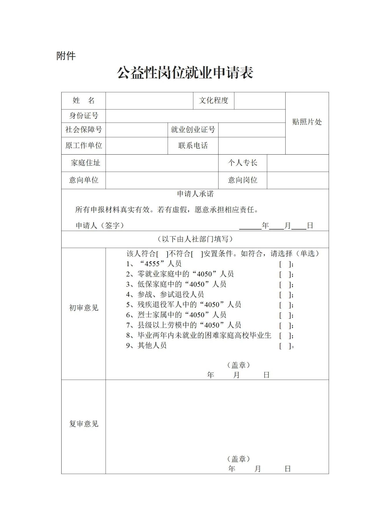 附件:公益性岗位就业申请表