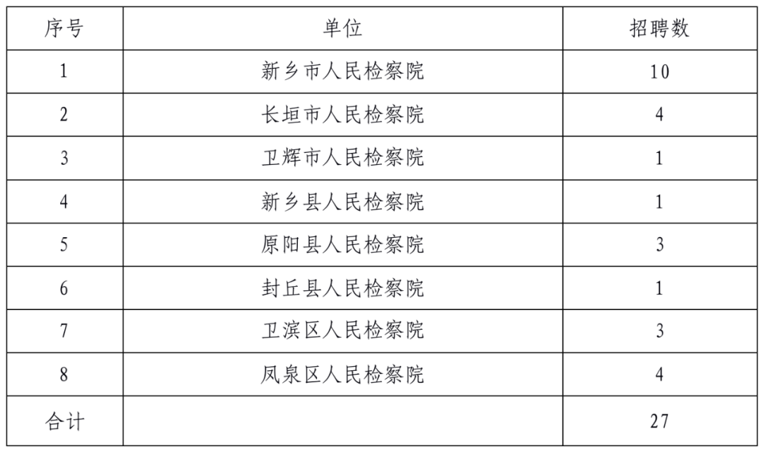 2.报考新乡市人民检察院要求具有大学本科及以上学历,报考新乡市基层检察院要求具有普通高等学校专科及以上学历,报考专业均限为法律类、文秘类、计算机类、公安与司法类、工商管理类及检察事务等相关专业;