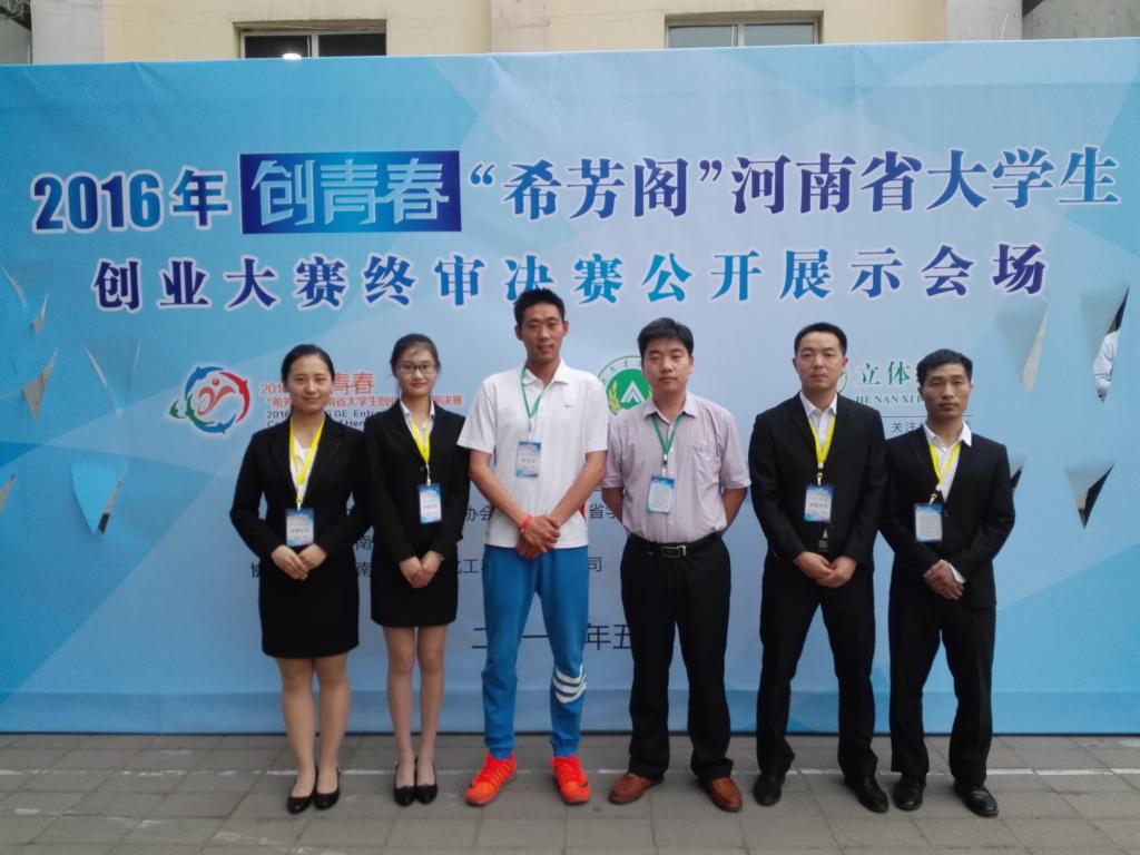 5月25-27日,2016年“创青春”河南省大学生创业设计大赛终审总决赛在河南农业大学举行。我院参赛团队表现突出,荣获金奖。此外,我院朱国政老师指导的《学童义务家教公益项目》和郑俊珂老师指导的《九州旅游服务有限责任公司》两个项目荣获铜奖。