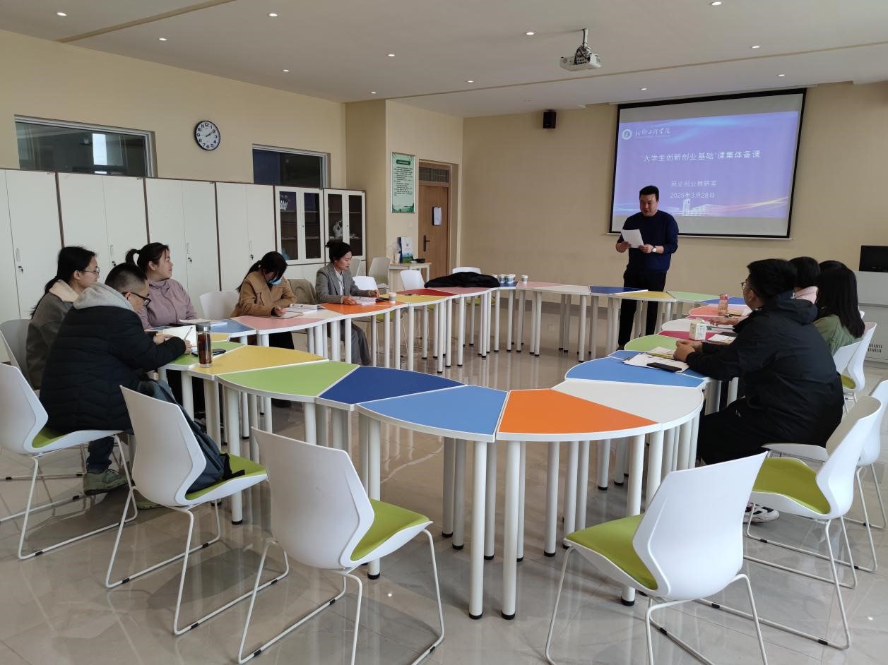 为进一步规范课堂教学,促进教学经验交流,提升创新创业基础课程的教学效果和质量,3月28日下午,就业创业教研室在综合实验楼520教室组织了“大学生创新创业基础”课集体备课活动,特邀新乡医学院副教授赵民出席,承担教学任务的全体任课老师参加了会议。