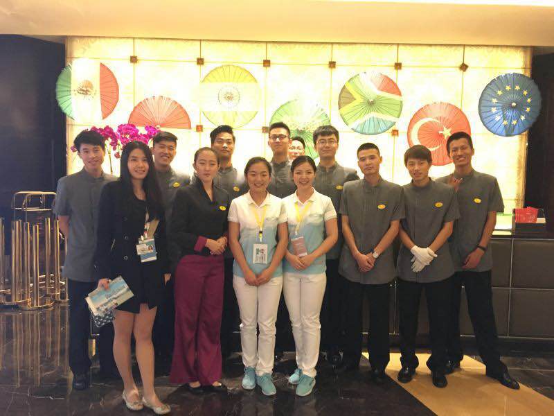 对于G20的到来,学生们时刻准备着。为了进一步提升服务水平,他们学习了G20的相关知识,进行了系统的英语培训和礼仪培训等,他们成功地入选了第一批楼层巡视员,并用自己的耐心与细心,圆满地完成了任务。