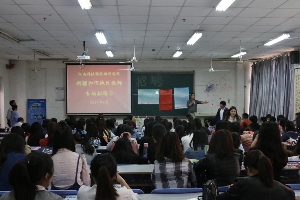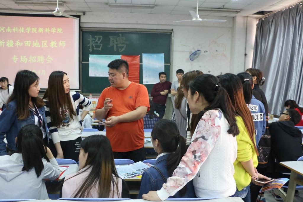 4月24日,由招生就业部主办、外语系承办的“新疆和田地区教师专场招聘会”在12号教学楼合五教室举行,我院英语、汉语国际教育和人力资源管理等三个师范专业的200余名毕业生参加了本次招聘会。