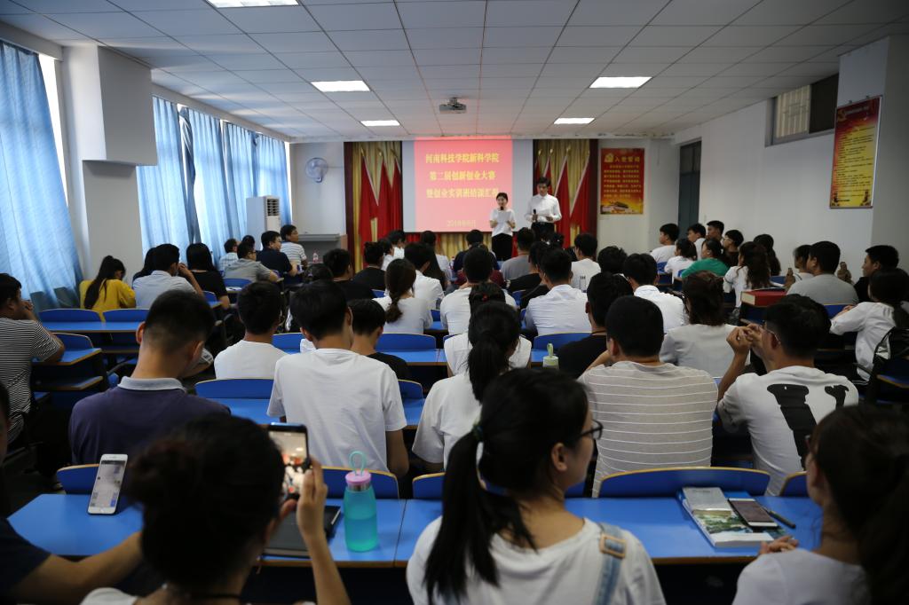 6月14日下午,由新科学院招生就业部主办,管理系承办的“第二届创新创业大赛”在12号教学楼601会议室举行。河南科技学院教务部史保金教授、河南科技学院经管学院吴国庆教授、德固慧生企业管理中心总裁陈富满、新乡863科技产业园招商部经理赵聪、新乡市智慧城市科技有限公司CEO刘俊森、新科学院招生就业部主任梁中锋和新科学院管理系主任孙玲担任了本次大赛评委,学院相关课程指导教师和学生创业积极分子参加了本次比赛的观摩和路演。