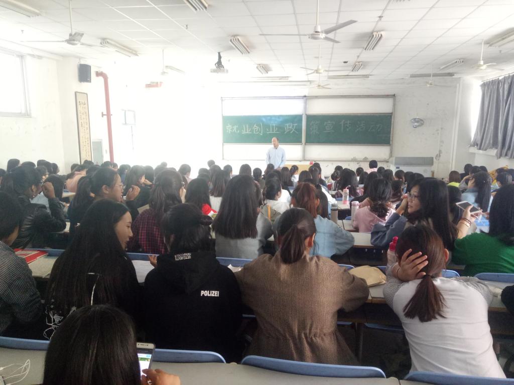 在此次就业创业政策宣传活动中,各系也采取了各种措施,举办了各种活动予以响应。如辅导员宣讲、政策解读等。借助学生身边的活生生的实例,引导学生对三支一扶、应征入伍、招教特岗等就业形式的了解和向往;通过现场解答学生们对就业创业制度、措施的疑问,肃清学生消极思想、端正学生就业态度,促进其就业创业积极性的提高。