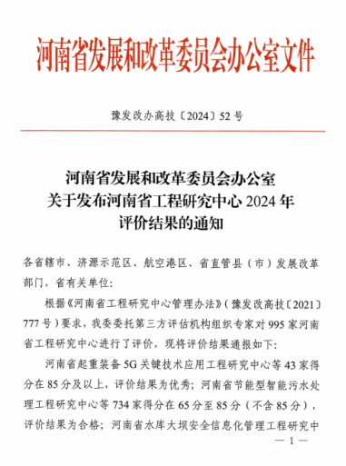 近日,河南省发展改革委员会发文公布了河南省工程研究中心2024年评价结果,依托我校信息工程学院建设的“河南省用户行为意图分析与画像工程研究中心”顺利通过评价,结果合格。