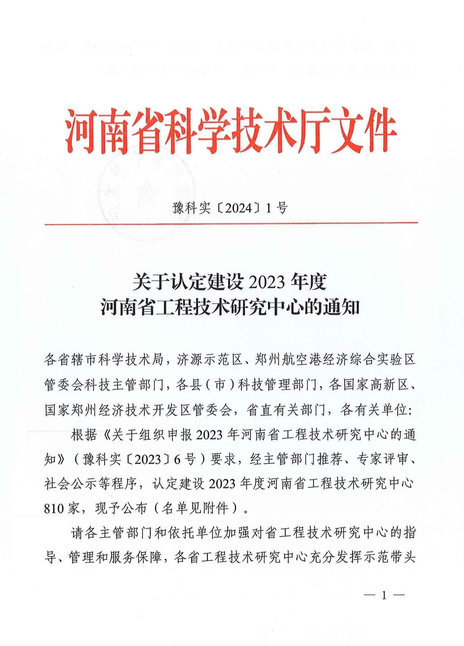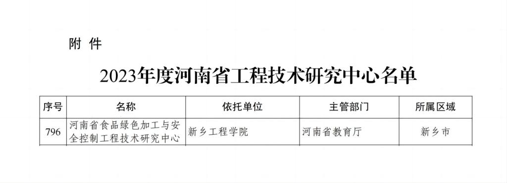 近日,河南省科学技术厅发布了《关于认定建设2023年度河南省工程技术研究中心的通知》(豫科实〔2024〕1号),经主管部门推荐、专家评审、社会公示等程序,由我校食品工程学院牵头申报的“河南省食品绿色加工与安全控制工程技术研究中心”获批立项。