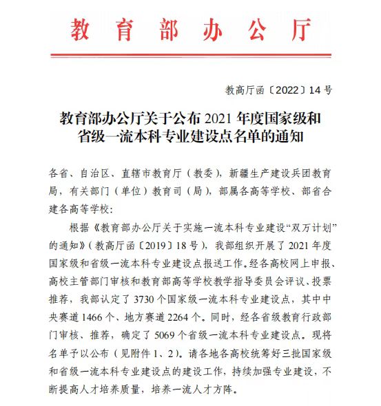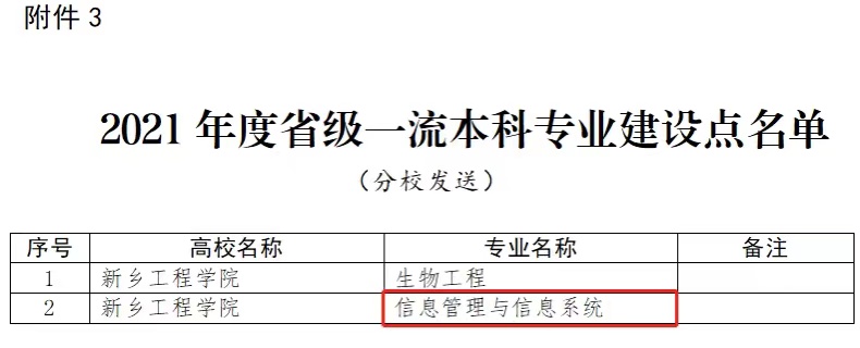 近日,教育部办公厅下发《关于公布 2021 年度国家级和省级一流本科专业建设点名单的通知》(教高厅函〔2022〕14 号)文件,我院信息管理与信息系统专业获批2021年度河南省一流本科专业建设点。近年来,经管学院高度重视专业建设工作,不断深化教育教学改革,着力改造提升传统专业,打造特色优势专业。此次信息管理与信息系统专业获批省级一流本科专业建设点,是学校推进高质量发展的重要成果,是对我院专业建设的充分肯定和认可。学院将以此为契机,以“双万计划”专业建设点为示范引领,严格按照一流本科专业建设要求,落实立德树人根本任务,不断加强师资队伍建设,修订本科专业人才培养方案,全面提升专业教育水平和人才培养能力,推动学院教育教学再上新台阶。