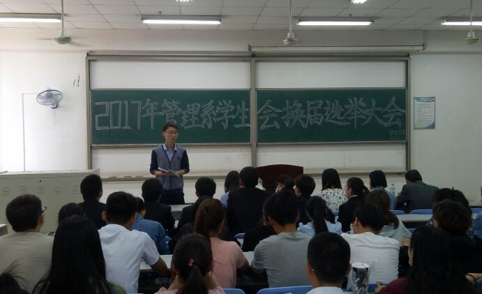 此次换届选举大会是我系学生会的更新换代,旨在选拔出更加优秀的人才。大会上,团总支部书记李捷首先对此次大会进行工作部署,他指出本次大会分为竞选主席团和竞选部长两部分,采用演讲方式进行,主席团竞选者需现场回答主持人准备的问题。演讲中,所有竞选人员身着正装,信心满满,按照竞选顺序依次上台演讲。竞选者别出心裁的自我介绍、有条不紊的工作思路、杰出的的个人优势及他们优秀的个人表现,让现场人员掌声阵阵。演讲完毕后,系主任孙玲对近期学生会工作作出总结性发言,她首先对学生会全体成员这一年来的突出成绩提出表扬,并希望通过此次选举能够选拔出更加优秀的学生干部,再创管理系佳绩。最后,团总支书记李捷对参选人员演讲方面提出激励,希望不论竞选结果如何,在场人员都能不忘初心,勇往前行。