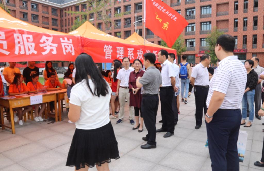 九月金秋,又是一年迎新时。9月9日-10日,在学院统一指导下,管理系展开了为期两天的迎新工作。本次迎新工作由管理系学生会负责,包括学生会成员,新生班级代班,迎新志愿者等百余名同学。为了让新生及其家长对迎新接待百分百满意,在系领导的统一部署下,学生会从如何安排提前到校的新生,到规划报到流程,制定突发事情应对措施等,都做了详尽的准备和安排。