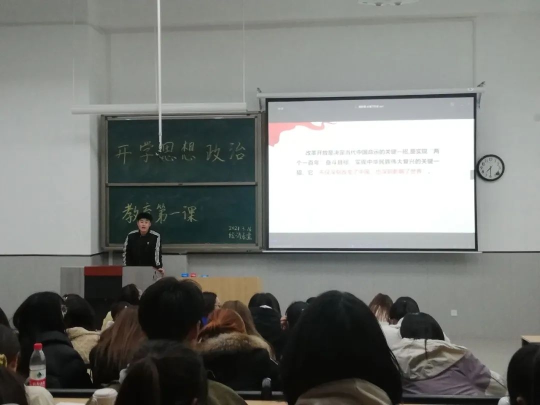 为进一步加强学生的思想政治教育工作,培养学生的政治素养和奉献精神,激发学生的爱党、爱国、爱校、爱家情怀。经济系于2021年3月16日19:30在B2-110教室组织召开春季开学思想政治教育主题会议。本次会议由经济系国贸193班班长赵海宇主持,经济系19级全体成员按时与会。