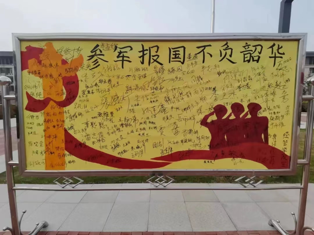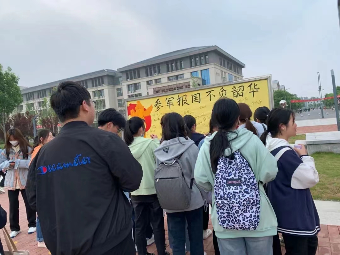 为扎实做好2022年大学生征兵宣传工作,鼓励大学生响应国家增强国防力量的号召,经济与管理学院于5月11日下午在校园国旗台附近举行以“参军报国,不负韶华”为主题的国旗台下签名活动,经管学院学生积极参加活动。