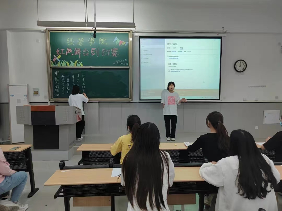 为迎接党的二十大,庆祝建团100周年,大力弘扬以爱国主义为核心的伟大民族精神,展现新青年的独特魅力,经管学院于4月23日在教学楼1-208组织开展以“喜迎二十大,永远跟党走,奋进新征程”为主题的红色舞台剧初赛。