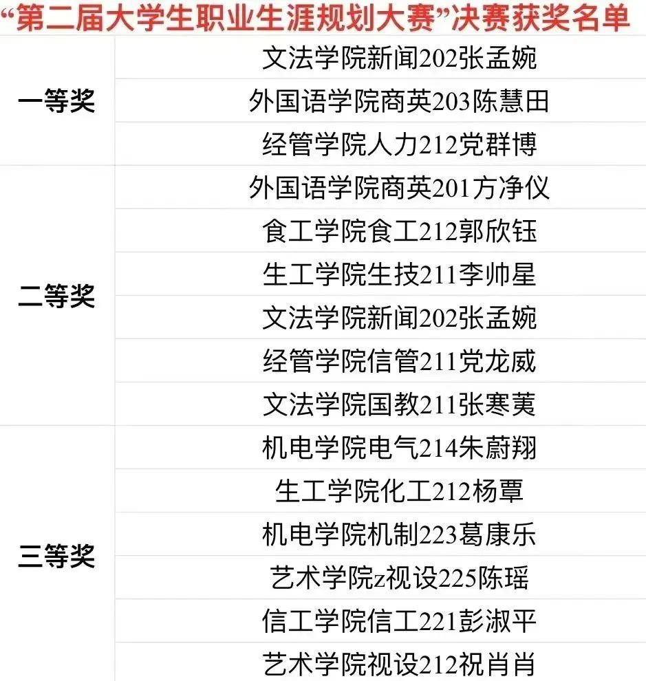 第二届大学生职业生涯规划大塞决赛获奖名单